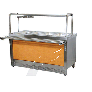 Размер: 1500x700x850/1350 Захранване: 220V - 50Hz / 2.5 KW 4 гастронорма на 1/1 Тегло: 70 кг
